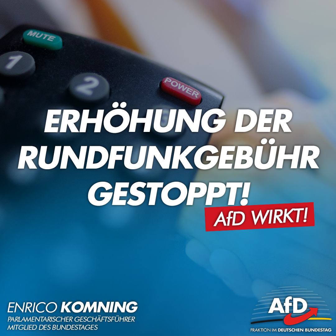 Reiner Haseloff (CDU), Ministerpräsident von Sachsen-Anhalt, hat nun den Gesetzentwurf zum Rundfunkstaatsvertrag vor der entscheidenden Abstimmung im Landtag zurückgenommen. Folglich wird die geplante Erhöhung der Rundfunkgebühr blockiert und der Beitrag kann nicht wie vorgesehen zum 01.01. steigen. Ohne das Engagement unserer Kollegen der AfD im Landtag von Sachsen-Anhalt, wäre die unsinnige Erhöhung durchgegangen. Es gilt abzuwarten, ob die CDU in anderen Bundesländern, wie Mecklenburg-Vorpommern, klar Farbe bekennen und die unsinnige Beitragserhöhung zusammen mit der AfD ablehnen werden.