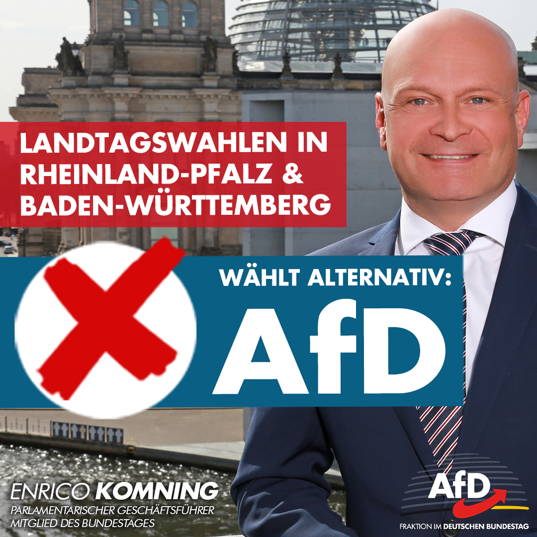 Am heutigen Sonntag stehen Landtagswahlen in Rheinland-Pfalz und Baden-Württemberg an. Nutzt Eure Chance, mit der desaströsen Politik der Alt-Parteien abzurechnen! Schenkt der einzig wahren und authentischen Oppositionspartei Euer Vertrauen und wählt heute die AfD!