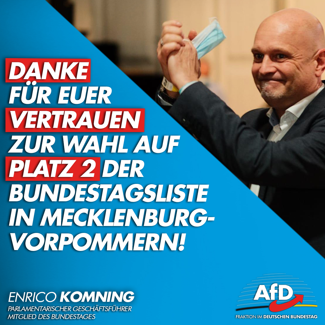 Auf der Wahlversammlung zur Aufstellung der Landesliste zum 20. Deutschen Bundestag konnte ich gestern gegen Ulrike Schielke-Ziesing, MdB und Patrick Schiffler den Listenplatz 2 erringen. Ich danke allen, die mir das Vertrauen ausgesprochen haben. Ich werde im Wahlkampf liefern!