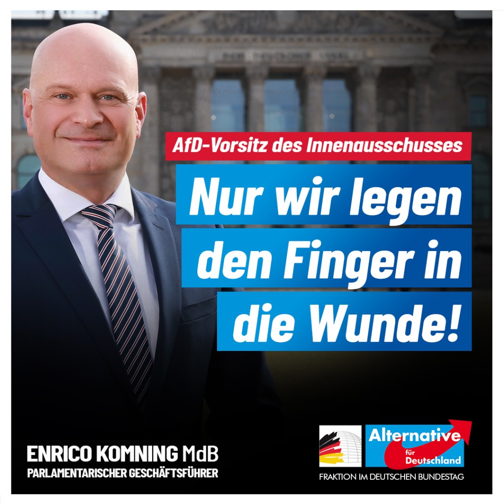 Mit der neuen 20. Wahlperiode des Deutschen Bundestages werden auch die Vorsitzenden der jeweiligen Ausschüsse wechseln. So stehen der AfD den Vorsitz im Gesundheits-, Entwicklungs- und Innenausschuss zu. Letzteres lässt derzeit die Altparteien-Köpfe rot anlaufen. Denn gerade der Innenausschuss ist von großer Wichtigkeit. Terrorismus, Migration, Grenzschutz und Kriminalität, all das sind Themen, die den Mitgliedern des Innenausschusses beschäftigen. Dass nun ein großes Geschrei aufkommt, weil die AfD den Ausschussvorsitzenden stellen wird, ist wahrlich keine wirklich große Überraschung. Denn es sind doch gerade wir von der AfD-Bundestagsfraktion gewesen, die seit Jahren auf die katastrophalen Fehler der sog. Willkommenspolitik hingewiesen haben. Als letzte wahre Oppositionspartei haben wir den Finger in die Wunde gelegt, unzwar oft auch knallhart und sehr deutlich. Mit der neuen Ampel-Regierung wird das Thema der inneren Sicherheit mit aller Wahrscheinlichkeit keine Verbesserung finden, sondern eher im Gegenteil. Dagegen werden wir ankämpfen.