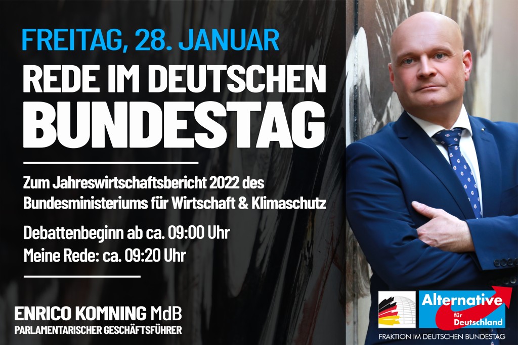 Am kommenden Freitag werde ich meine erste Rede in der neuen Legislaturperiode des Bundestags zum Jahreswirtschaftsbericht 2022 der Bundesregierung halten. Schaltet am Freitag gegen 09:20 Uhr ein, um mitzuerleben, wie wir Wirtschaftsminister Robert Habeck über den tatsächlichen Zustand unserer Wirtschaft aufklären.