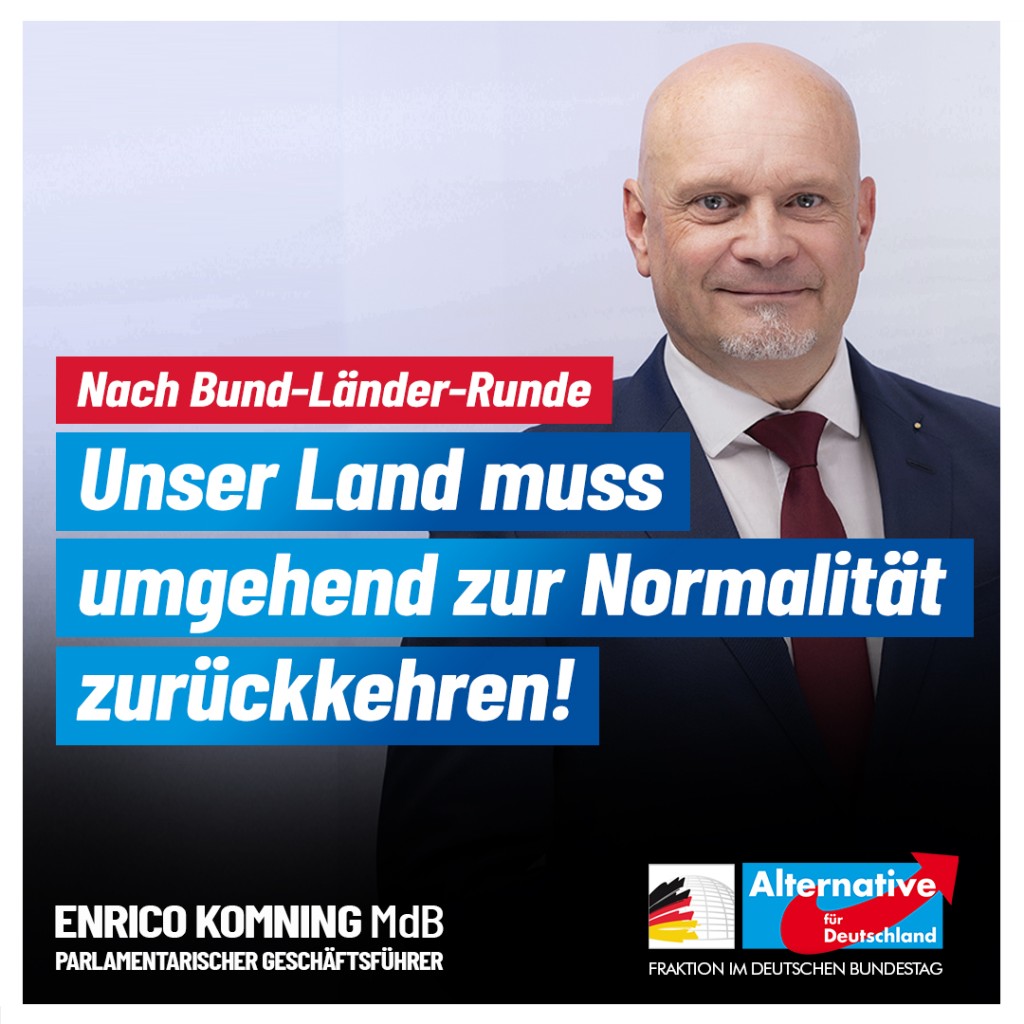Deutschland braucht so einen halbherzigen Stufenplan nicht. Statt dieser ellenlangen Salami-Taktik, muss unser Land endlich zur alten Normalität zurückkehren. Die unverhältnismäßigen Maßnahmen müssen unverzüglich aufgehoben werden, und zwar sowohl für ungeimpfte als auch geimpfte Bürger!