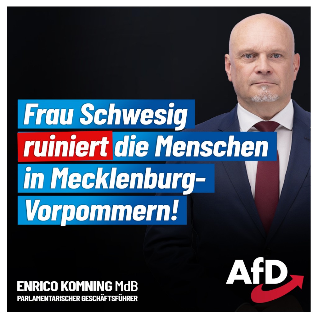 Frau Schwesig ist ein Synonym für eine politisch und moralisch abgewirtschaftete Altparteien-Politkaste, die endlich abtreten sollte.