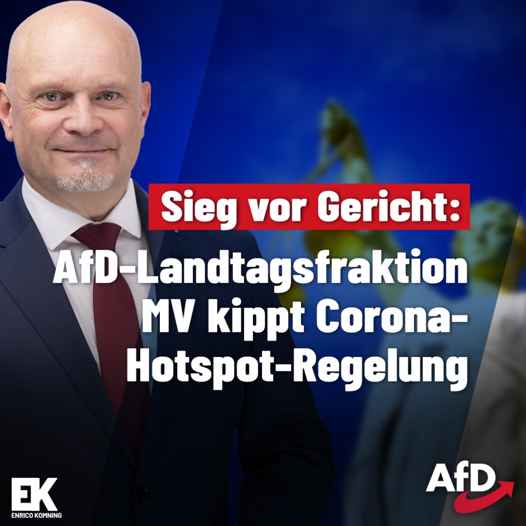 Der heutige Tag zeigt mal wieder: Unser Kampf für die Freiheit zahlt sich aus! Der Schweriner Landtag hatte im vergangenen Monat Mecklenburg-Vorpommern zum sog. Corona-Hotspot erklärt. Das Oberverwaltungsgericht in Greifswald gab heute einem Antrag unserer AfD-Landtagsfraktion in MV statt. Die Hotspot-Regelung ist rechtswidrig, die Maskenpflicht gekippt. Heute hat die Regierung unter Frau Schwesig eine große Schlappe erlitten, und das völlig zu Recht! Der Beschluss aus Greifswald zeigt, dass jeder Kampf für Freiheit – sei es im Parlament, auf der Straße oder vor Gericht – sich immer lohnt!